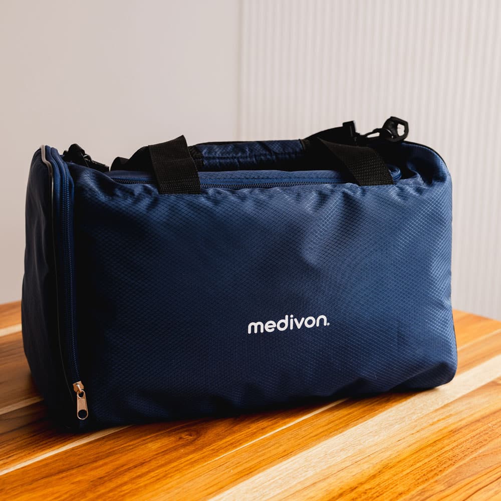 Grâce à son fonctionnement sans fil et à son sac de transport pratique, le MEDIVON Aeria est parfaitement adapté à une utilisation à la salle de sport, en voyage ou dans des lieux où l’accès à l’électricité est limité.