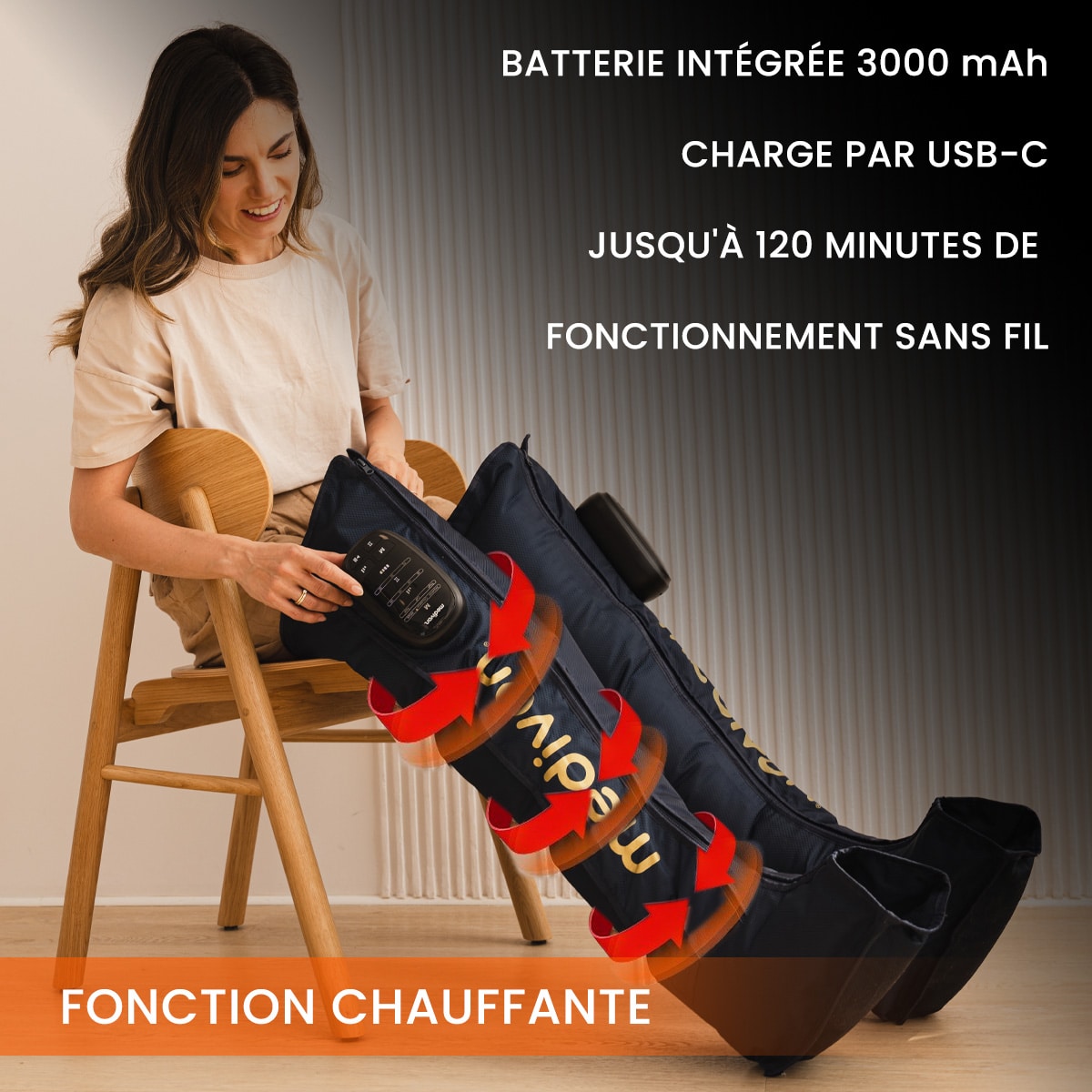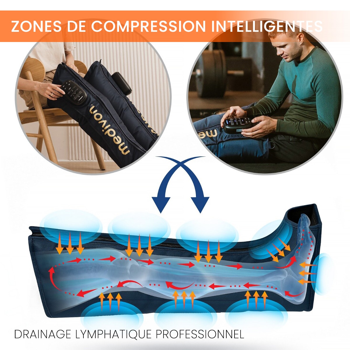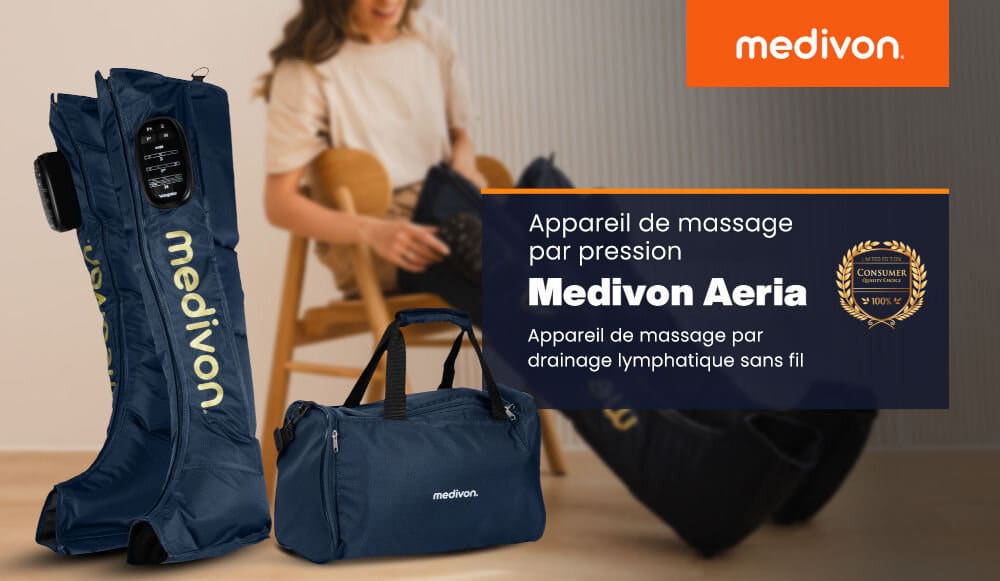 Le MEDIVON Aeria est un appareil de massage par pression qui aide efficacement à réduire les gonflements, améliorer la circulation et favoriser la récupération musculaire.