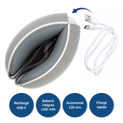 Grâce à sa batterie intégrée, l’appareil offre une relaxation prolongée sans avoir besoin d’être constamment rechargé, en faisant un partenaire fiable pour le soin de votre bien-être.
