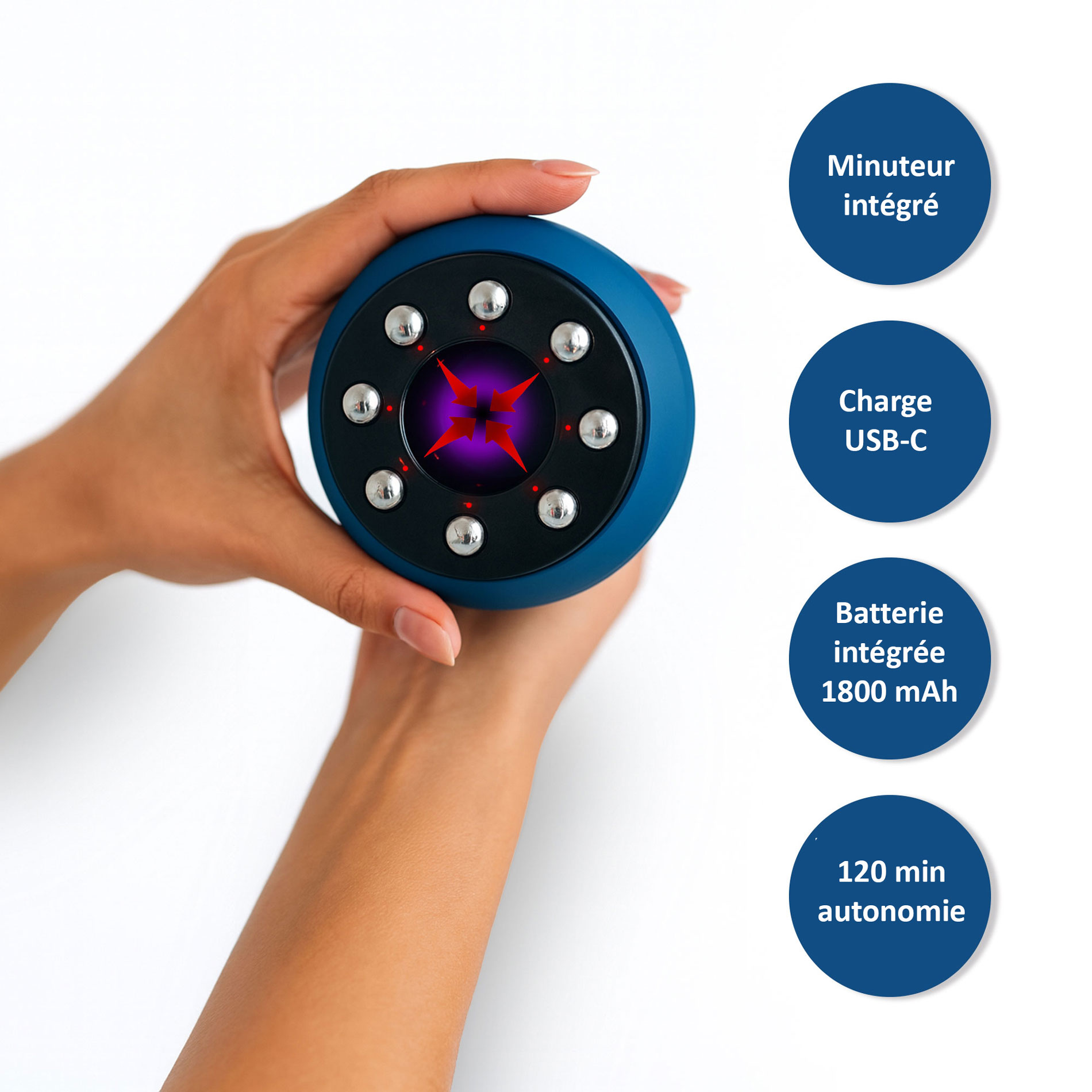 Le Medivon Halley permet un massage intensif mais doux. Grâce à sa technologie innovante, il est possible de détendre et de relâcher les couches musculaires superficielles et profondes. La stimulation favorise la circulation sanguine, ce qui entraîne une meilleure oxygénation de la peau et des muscles. Cela crée une sensation de profonde détente.