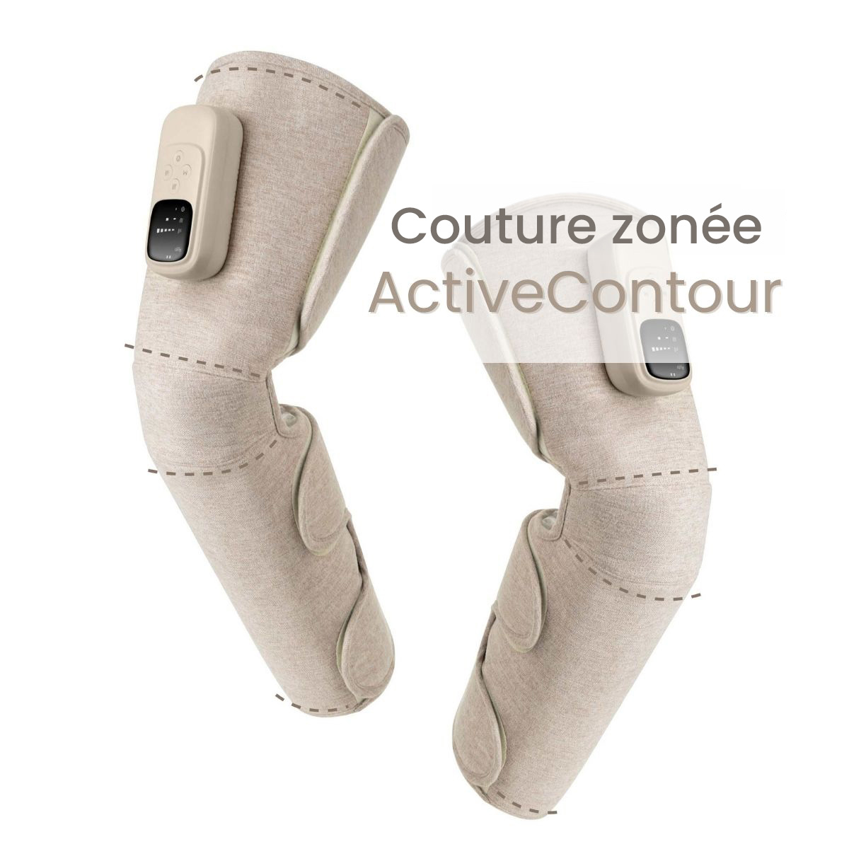 Medivon Solé Duo est équipé d’une couture zonée spéciale ActiveContour, qui stabilise le système de chambres à air et empêche tout déplacement pendant le massage. Les manchons de jambes s’adaptent ainsi précisément à la forme des jambes, tandis que la compression reste homogène et contrôlée sur toute la surface.